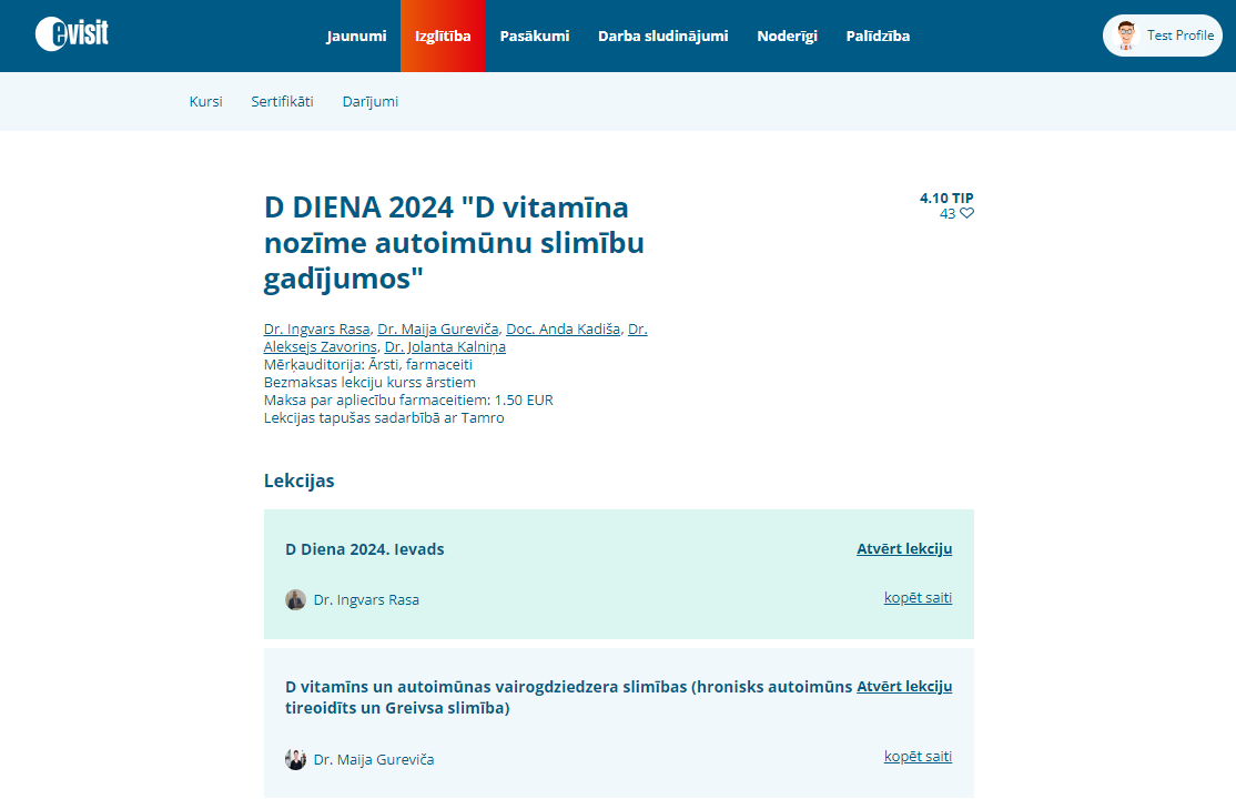 Pārliecinieties, vai Jūsu izvēlētajā lekciju kursā nav vairākas lekcijas. Uz testa jautājumiem jāatbild par katru lekciju.